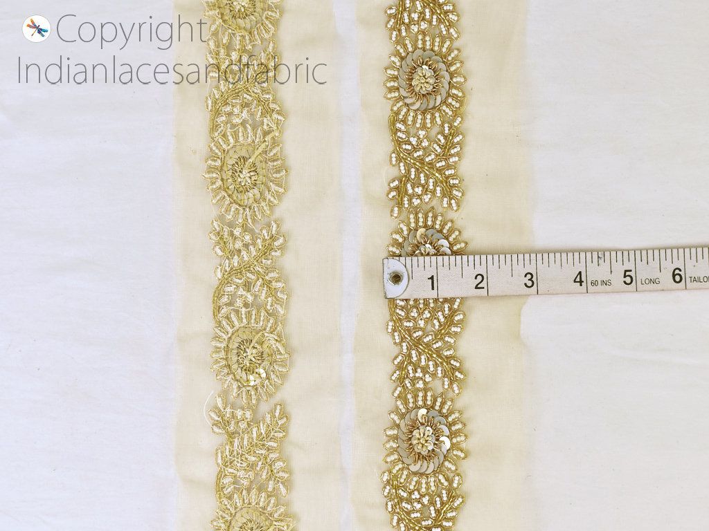 Gold Beaded Trims by the Yard Wedding Dresses Ribbon Bridal Belt Sashes Indian Laces Costumes Crafting Sewing Boutique Material Home Decor . Curtain tiebacks trim, curtain border, Beaded borders, tunics accessories, home decoration lace, kids dress trimming.
