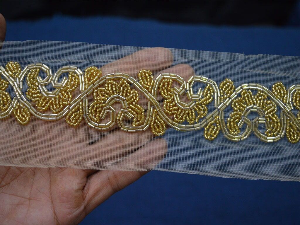 This is exclusive beaded trim Handcrafted, has been hand embroidered. This beautiful Lace can be used for Boutique material, craft project, women Kurtis, Bridal lehenga, Tops, Caps, salwar kameez, Etc.