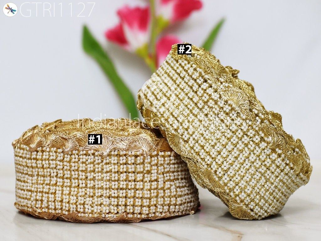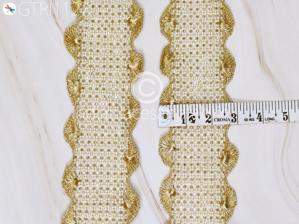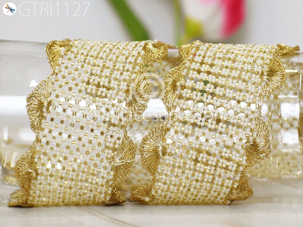 Gold Beaded Trims by the Yard Wedding Dresses Bridal Belt Sashes Indian Laces Costumes Ribbon Crafting Sewing Boutique Material Home Decor. Curtain tiebacks trim, curtain border, Beaded borders, tunics accessories, home decoration lace, kids dress trimming.