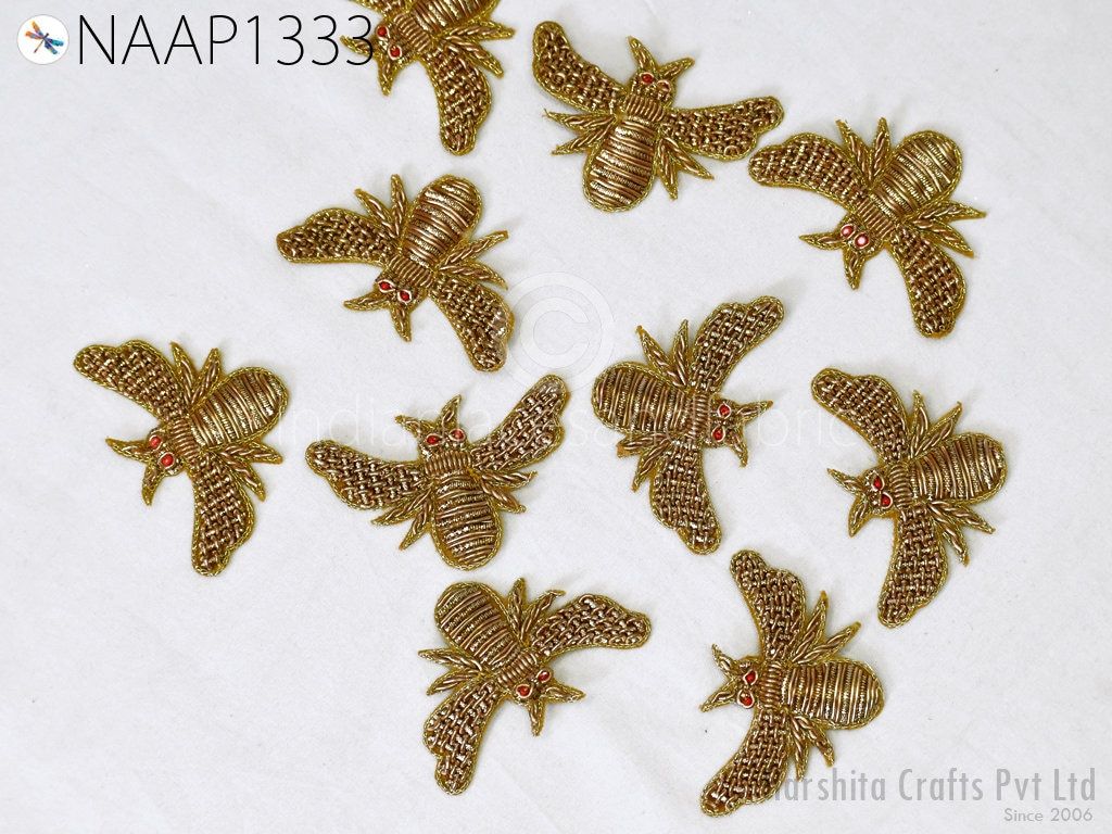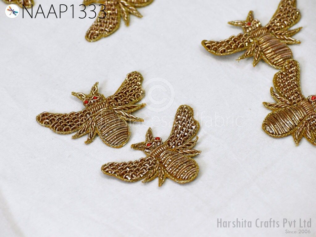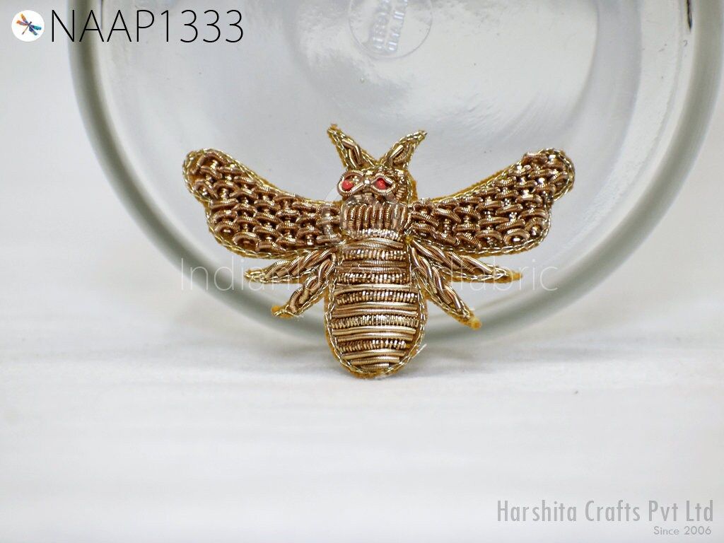 Honey Bee Indian Applique Golden Patch Bullion Sewing Clothing Accessories Dress Applique Crafting Handcrafted Appliques Scrap booking, Applique for dress, Christmas applique, Golden Appliques, Headband Applique, applique designs, Handcrafted Appliques, Scrap booking Appliques