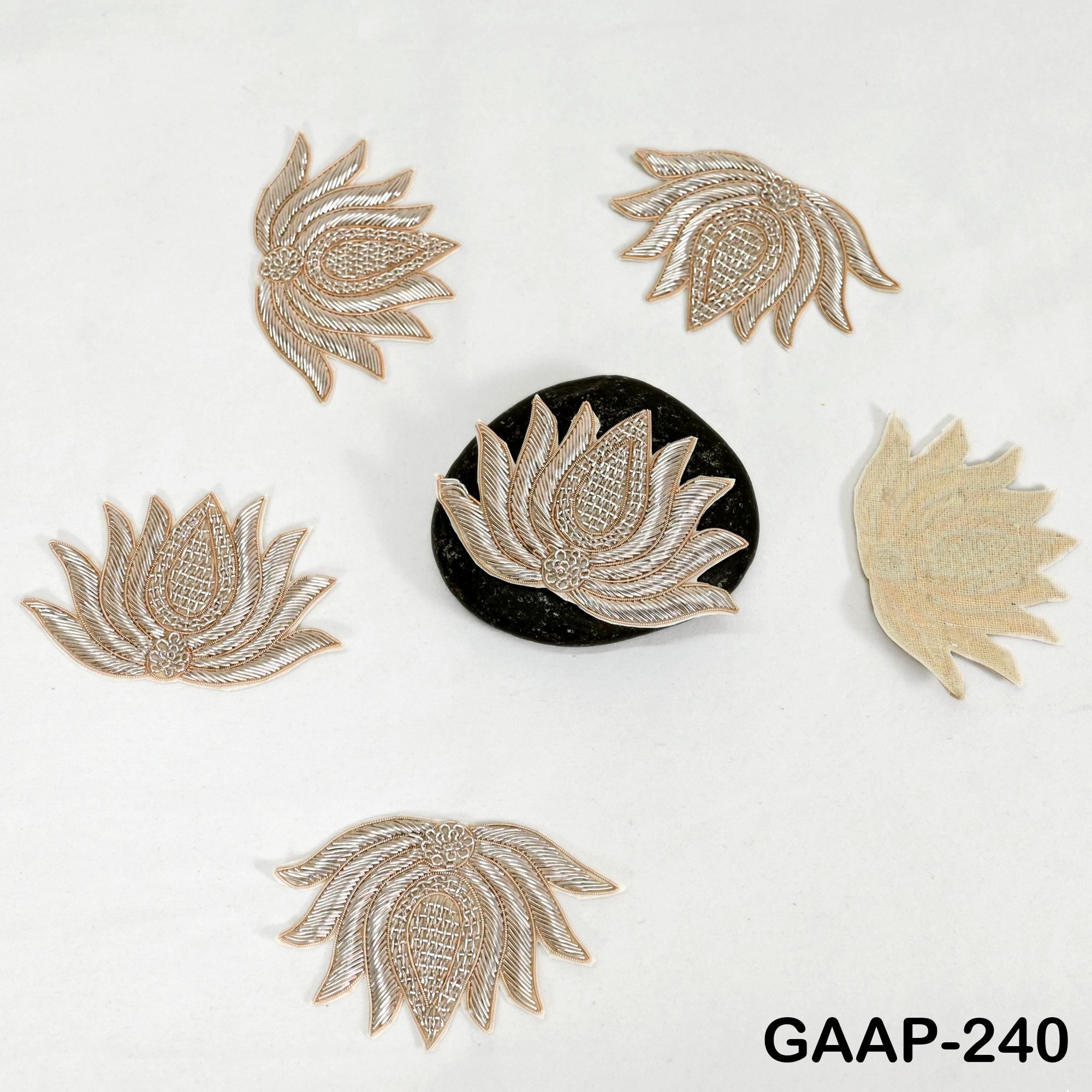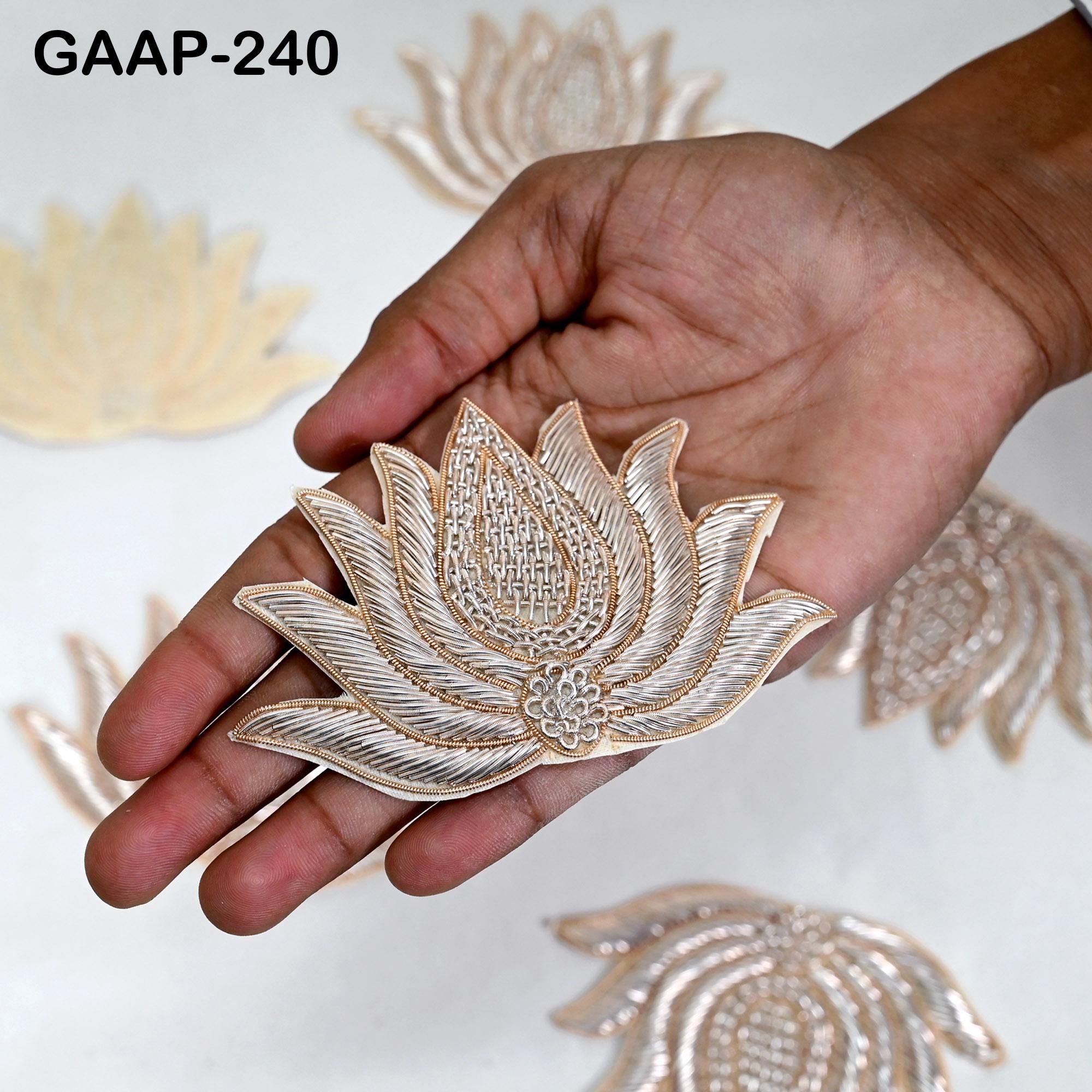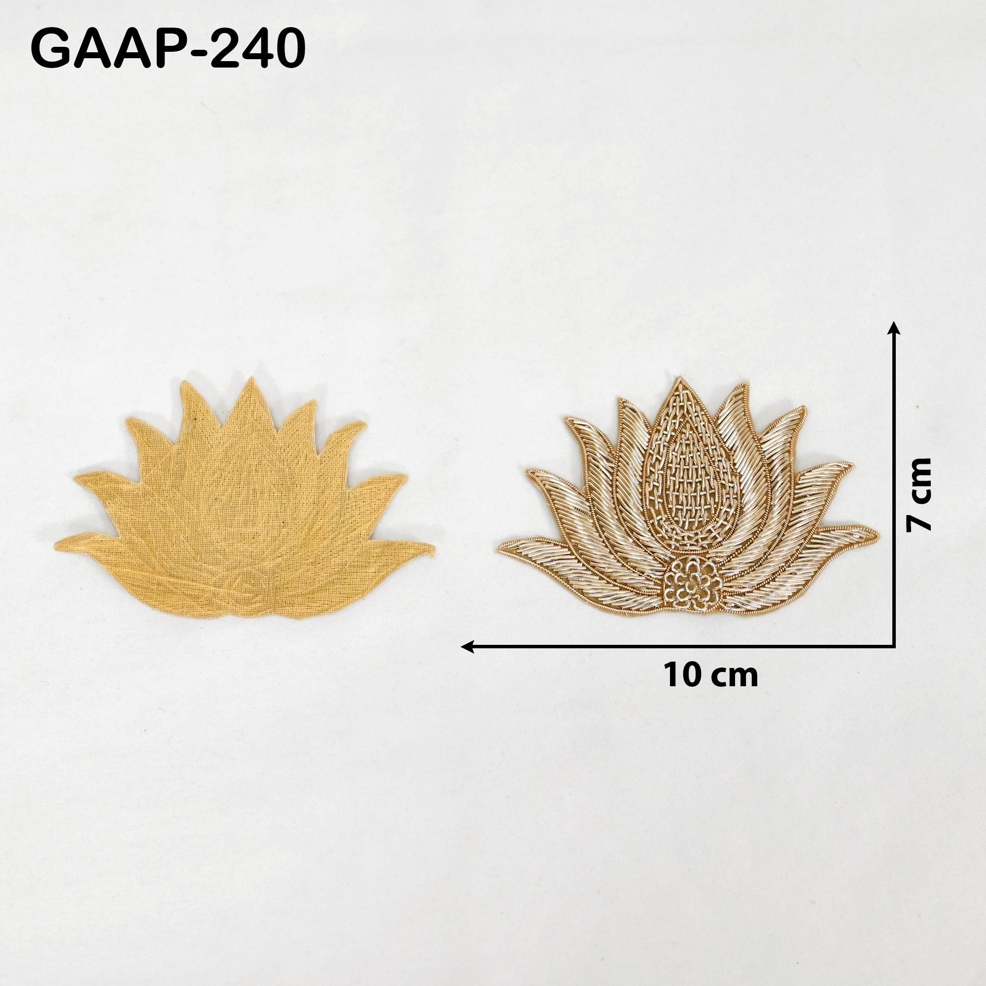 Add a touch of elegance to your ethnic or fusion creations with our handcrafted Lotus Flower Embroidered Appliqué Patch (Set of 4) in Silver and Antique gold.