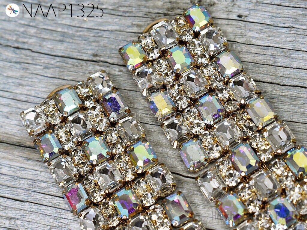 2 Pair Rhinestone Applique 13.5 cm | DIY Patch costume Shoe Headpieces | Rhinestone Applique for Dresses | Wedding Indian Decorative Gold Craft
