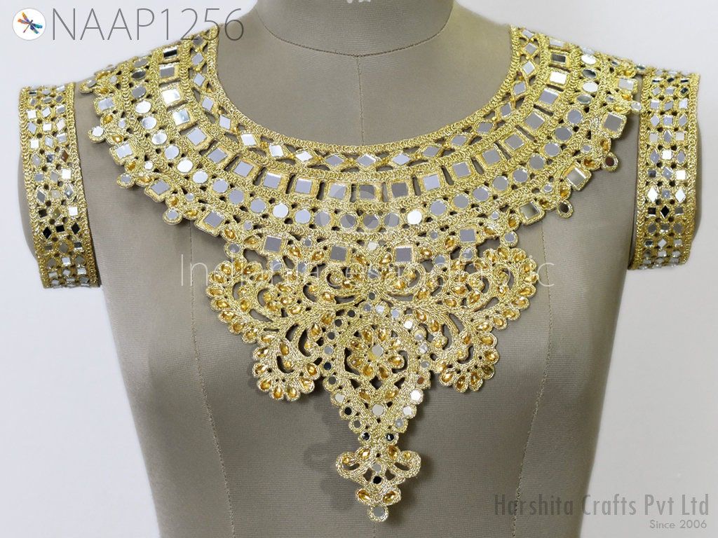 2 Pc Gold Sequins Neckline with Sleeves Decorative Patch Crafting Zardosi Neck Patches Decorated Handcrafted Beads Embroidery Applique for Kurtis, Handcrafted Patch, Sequins Patches, Wholesale Applique And Patches, Indian Patches, Christmas Patches, Patches For Decoration, Handmade Neckline, Bridal Neck, Wholesale Neckline, Sewing Patches, Decorated Neck Patches
