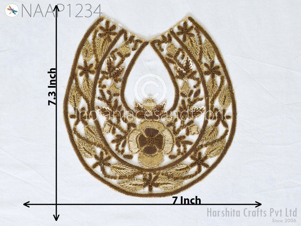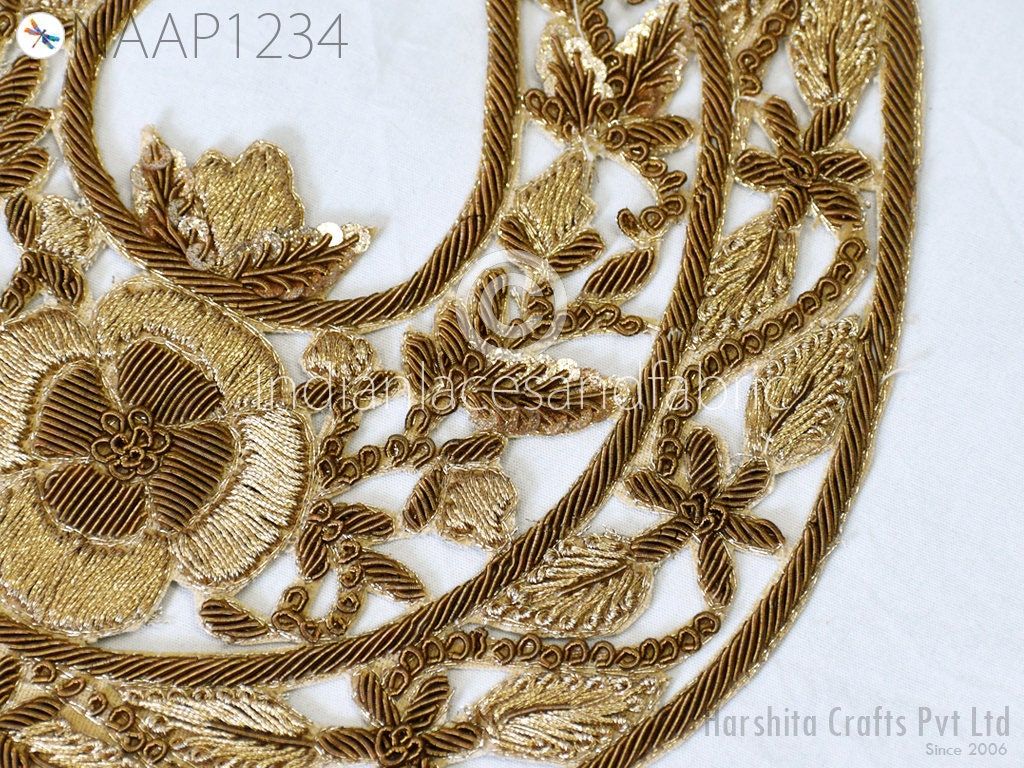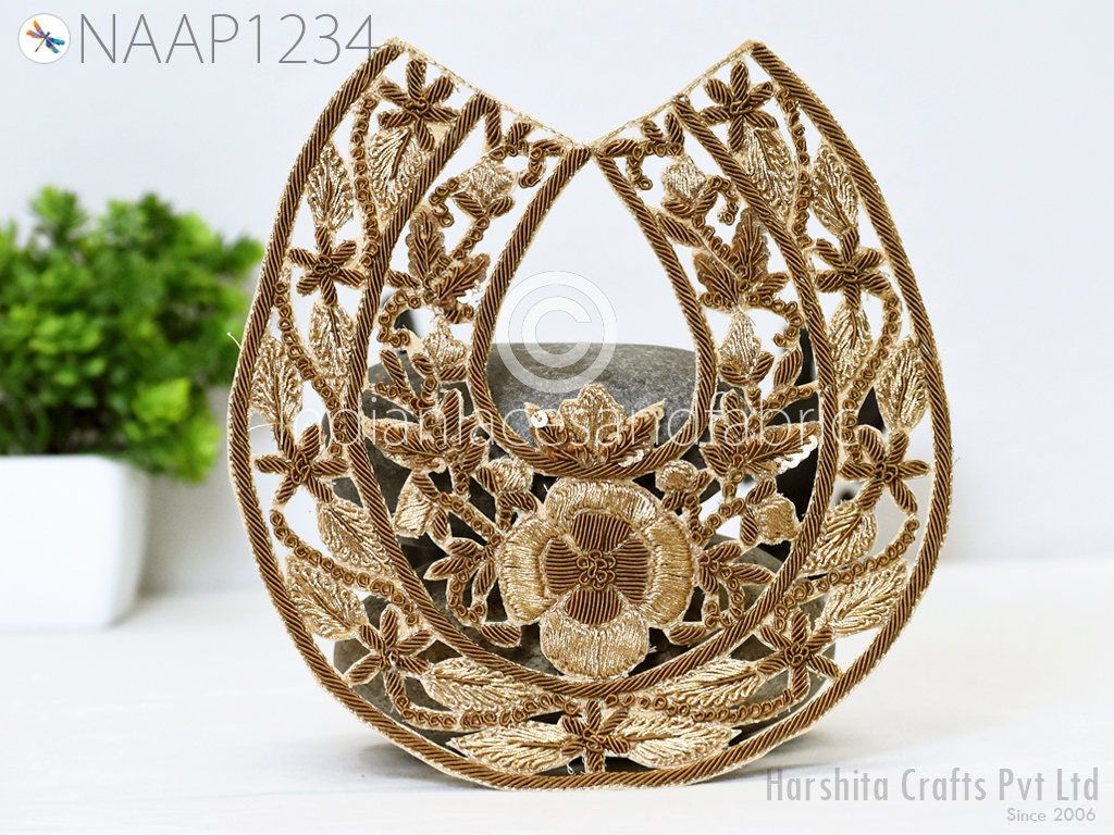 Gold handmade decorative appliques floral thread applique embroidered Indian sewing dresses patches crafting supply zardosi appliques, Indian Patches Appliques, Christmas applique, Applique for dress, Headband Applique, applique designs, Handcrafted Appliques, Scrap booking Appliques
