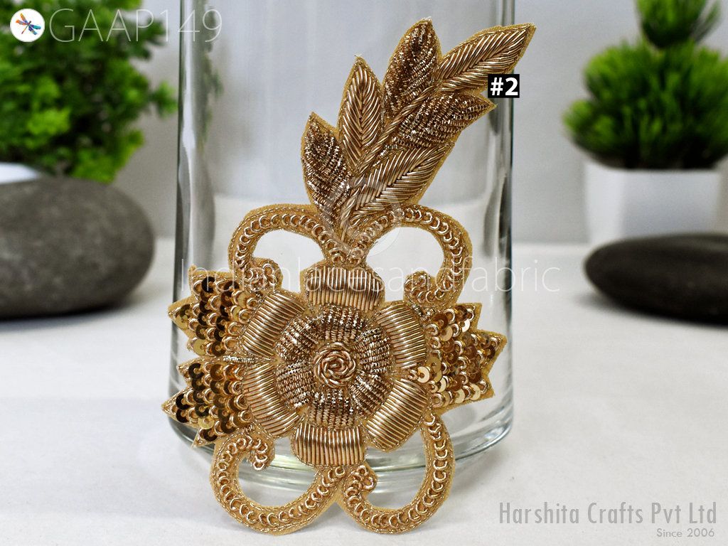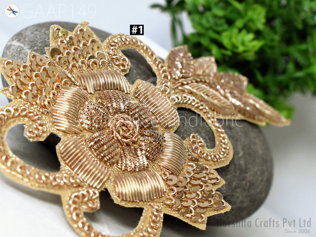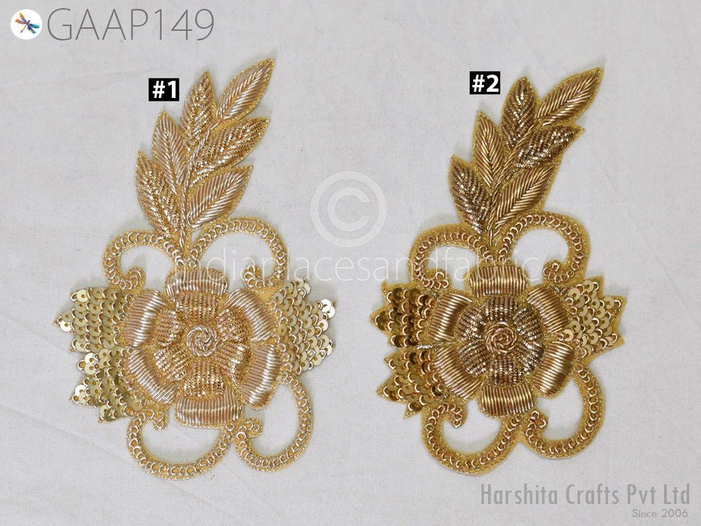 Decorative Floral Thread Gold Applique Embroidered Indian Sewing Dresses Patches Appliques Handmade Patches Crafting Supply Beaded Patches, Indian Patches Appliques, Christmas applique, Applique for dress, Headband Applique, applique designs, Handcrafted Appliques, Scrap booking Appliques