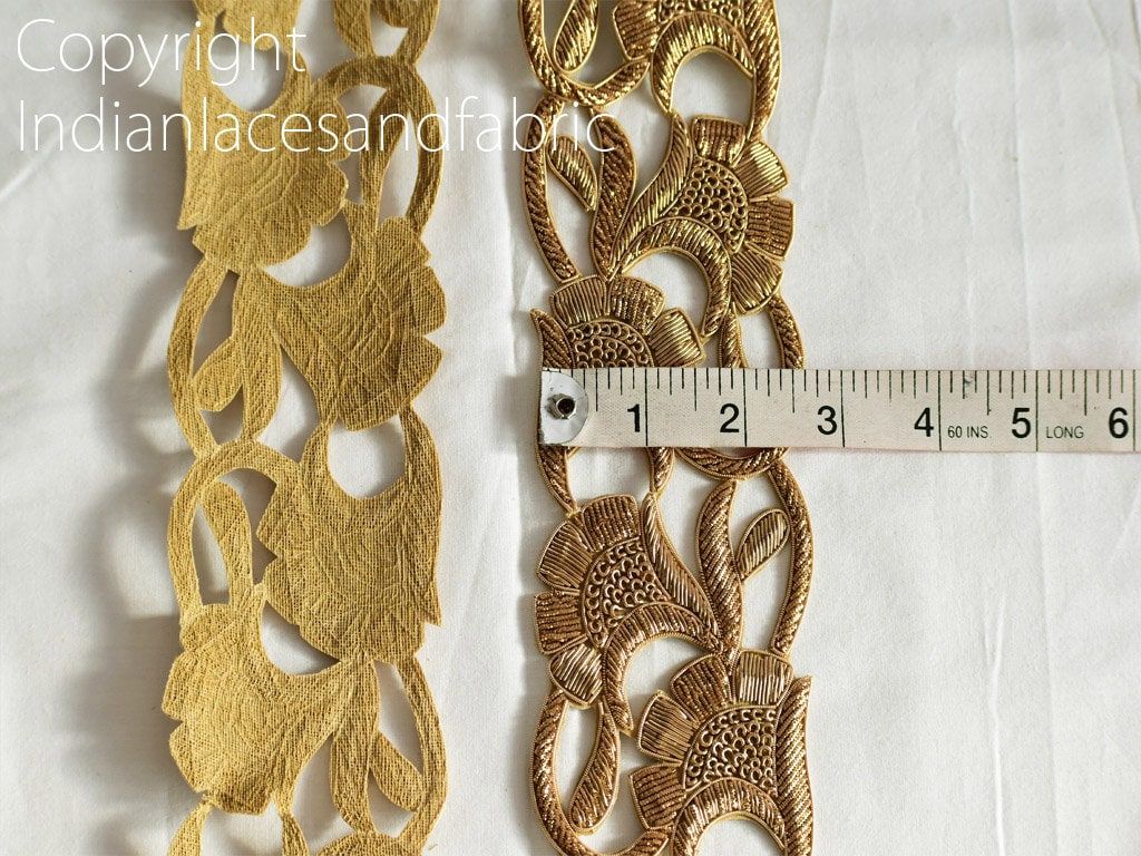 Gold Zari Trim By The Yard, Indian Handcrafted Zardozi 2.5 Inch Saree Border DIY Craft Ribbon Embroidered Sari Lace Handmade Trimming Dress Costumes, designing stylish blouses, Hair Accessories, Decorative embroidered lace, Party wear trimming, designer dresses borders