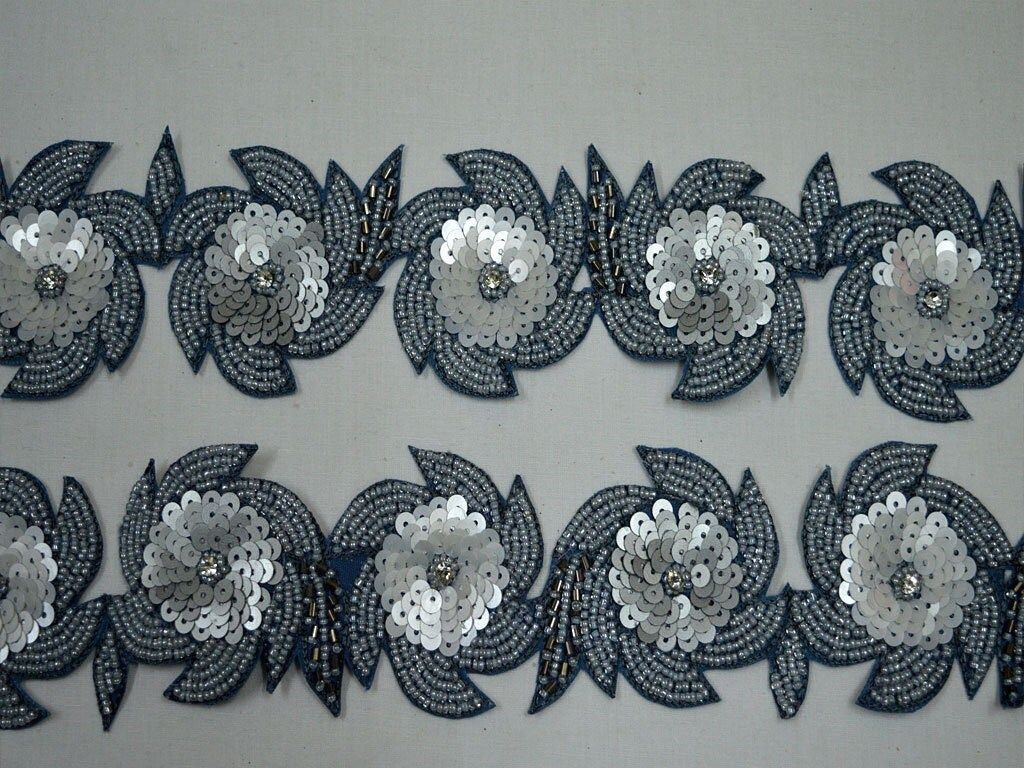 Grey Beaded Lace Trim by The Yard: Handmade Sari Border, Bridal Belt (2 Inch)