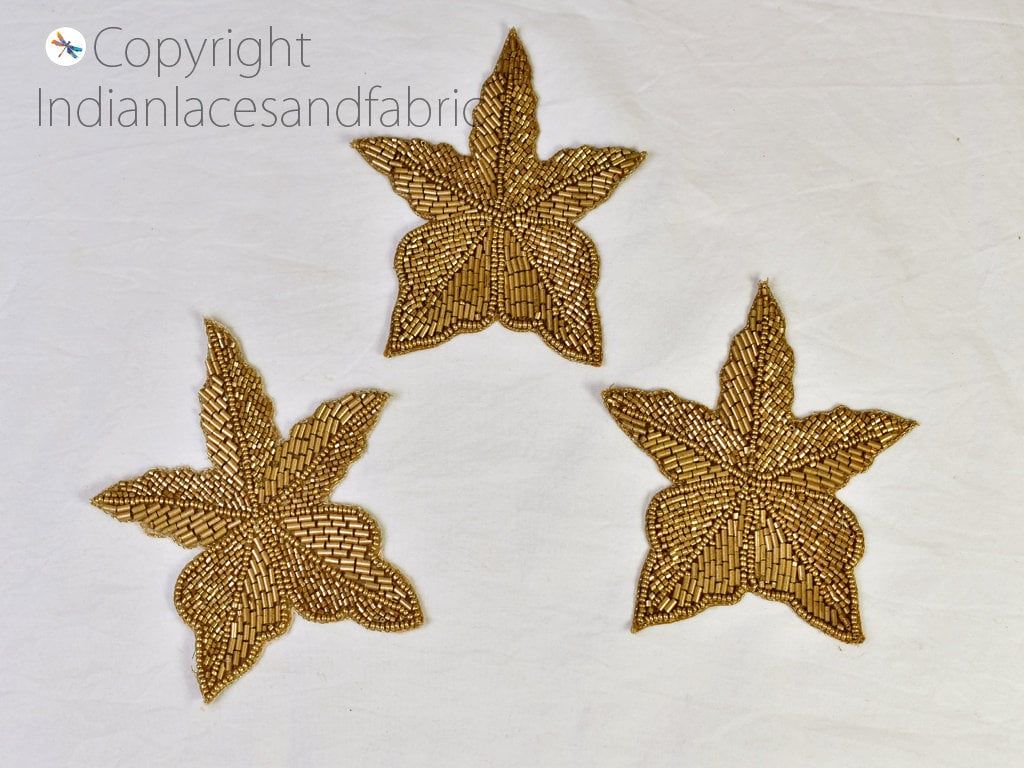 Handcrafted Beaded Applique Patches: Indian Embroidery, Sew-On Denim Embellishments (6 Pieces)