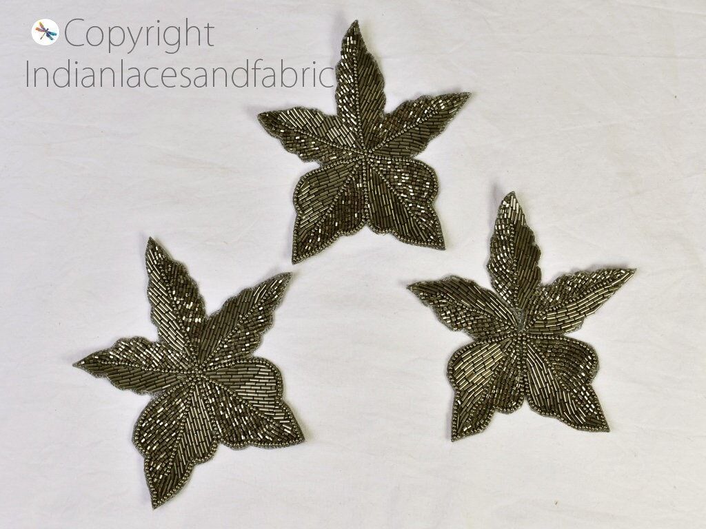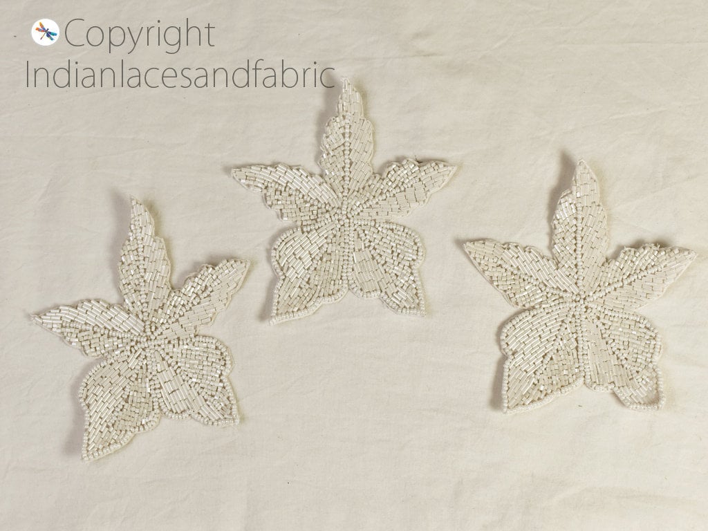 6 Pieces Handcrafted Indian Beaded Patches Embroidery Sew on Patch Decorative Patches Denim Patch Applique Embroidery Crafting Sewing, Christmas applique, Decorative Applique, Silver Appliques, floral applique, decorated beaded applique, applique for dress, wedding dress patch, bridal applique