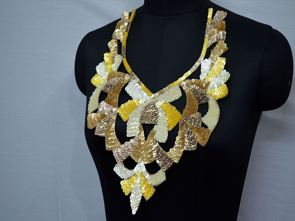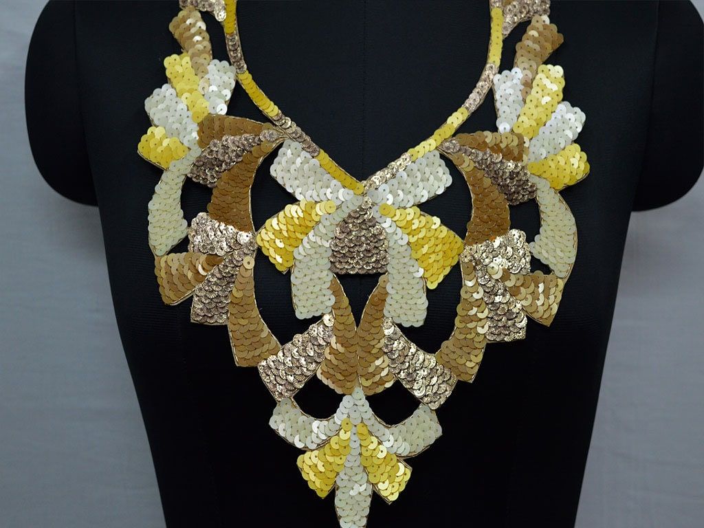Handcrafted Yellow Sequins Neckline Applique: Indian Embroidered Collar Patch