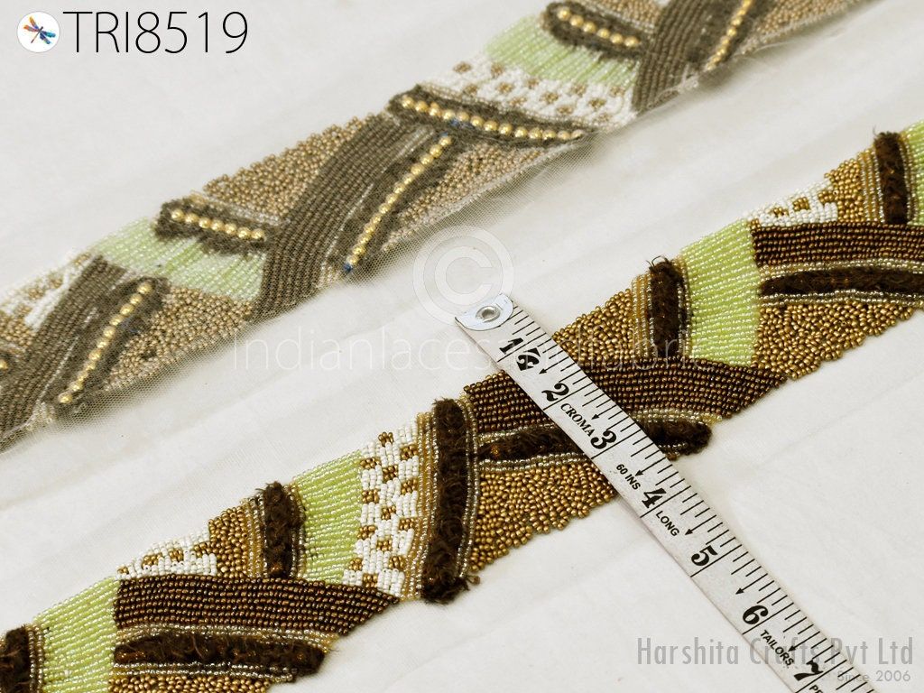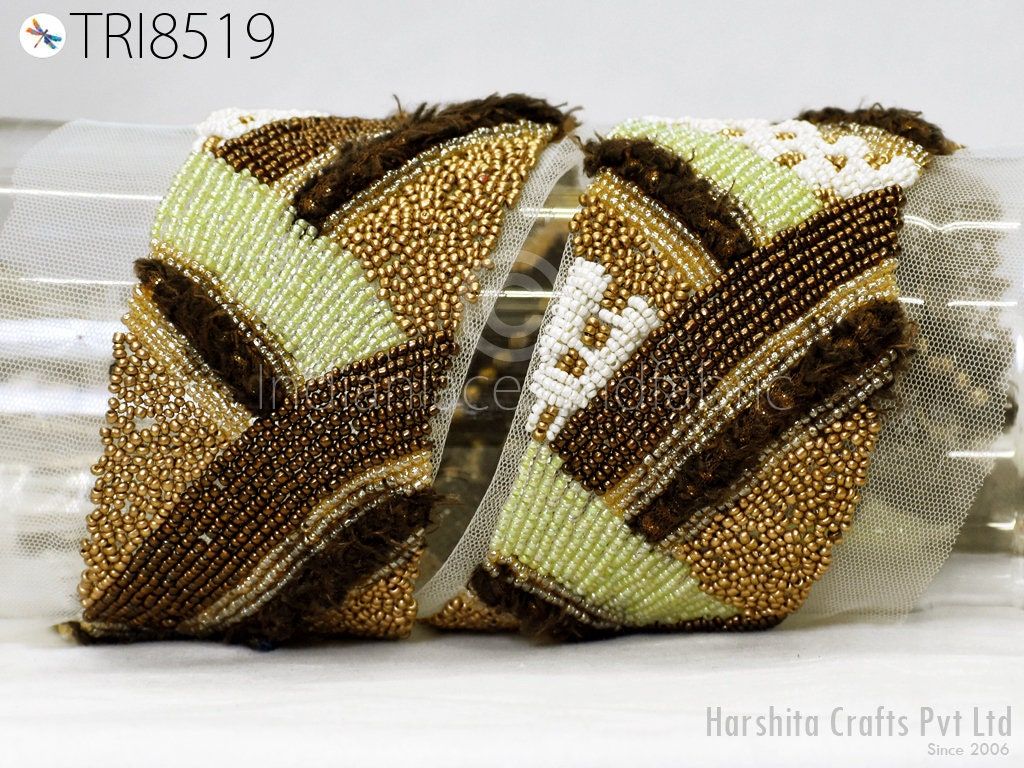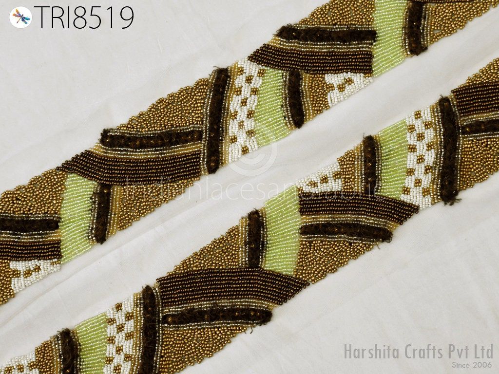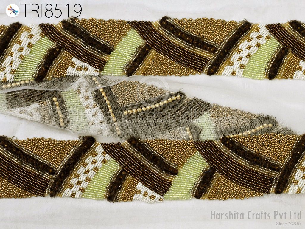 This is exclusive beaded trim Handcrafted, has been hand This beautiful Lace can be used for designing stylish blouses, shrugs, skirts, tunics, festive wear, wedding wear and dresses. Handbags, bed sheets, Headbands making, Bridal Clutches, jeans, Festive celebrations, Wedding trend, Bridal lehenga, etc.