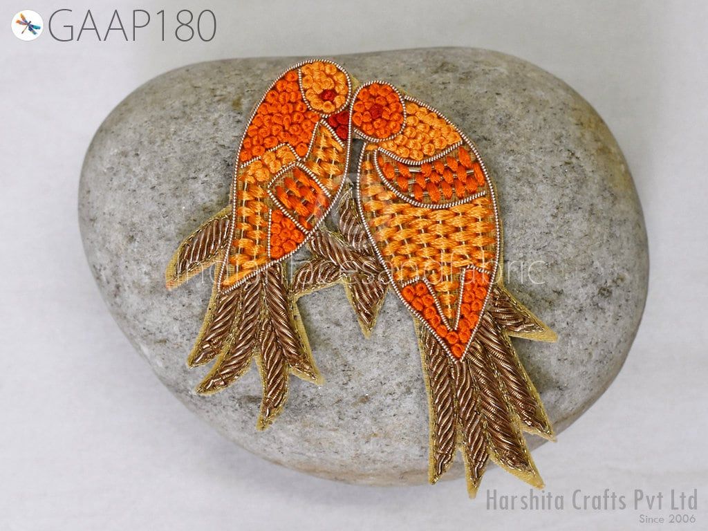 6 pc Handmade Lovebirds Patches - Christmas Appliques - 2.5 cm Indian Dresses Patches - Decorative Golden Sewing Crafting Supply Home Decor Christmas applique, Applique for dress, Headband Applique, applique designs, Handcrafted Appliques, Scrap booking Appliques