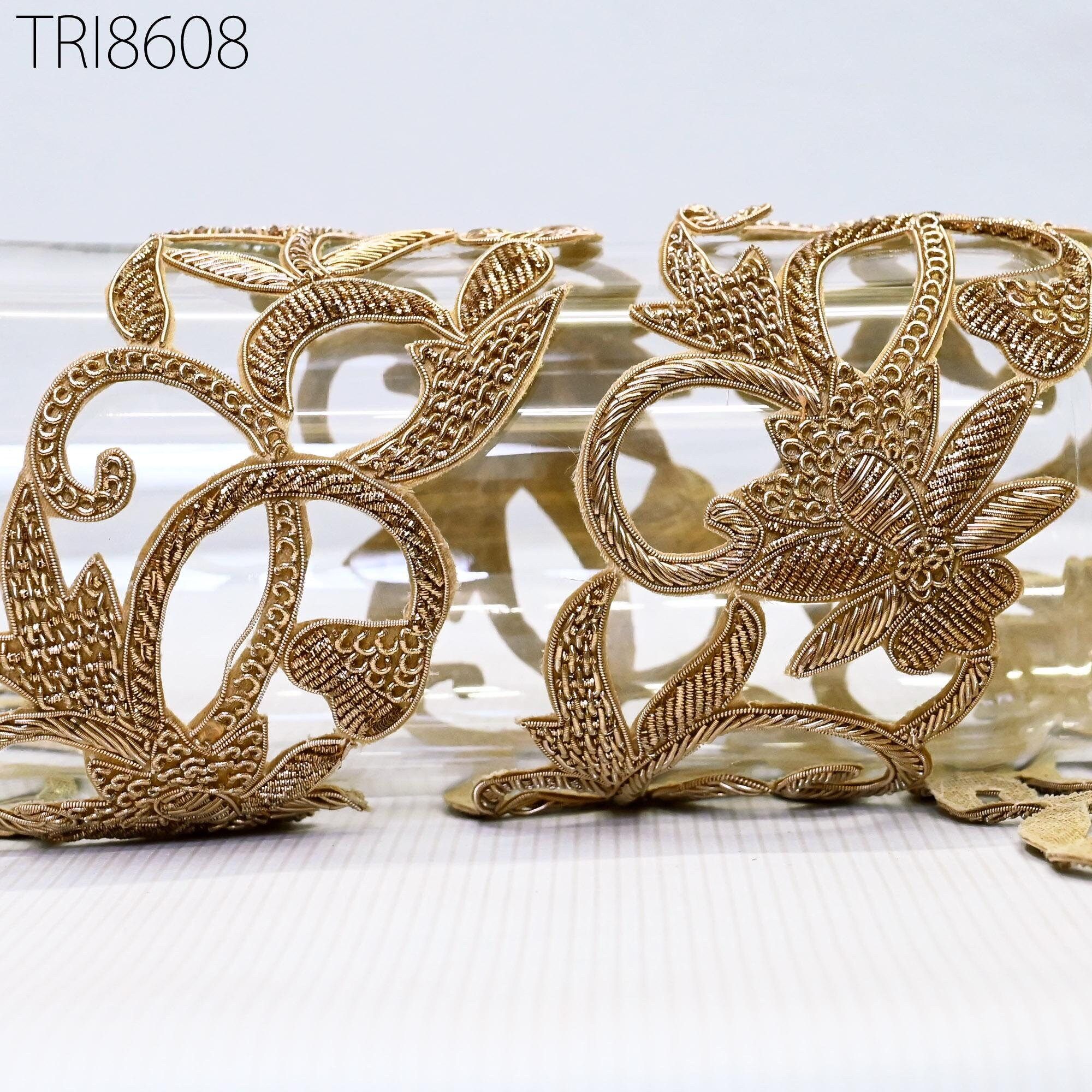 Exclusive Handmade Zardozi Trim By Yard | Beaded Indian Handcraft Wedding Sari Border DIY Craft Ribbon Saree Embroidered Zari Trim Costumes Home Decor Wedding Dress Ottoman decoration trim, Indian Saree Trim, Cushion Cover lace, Bag Embellishments border.