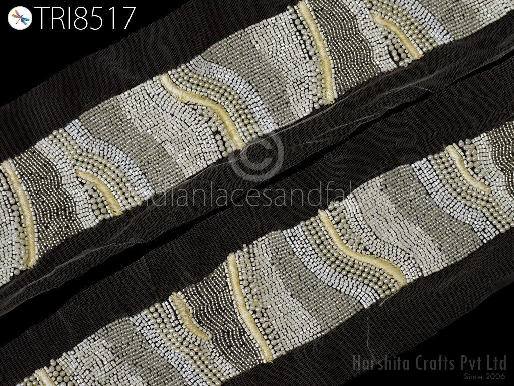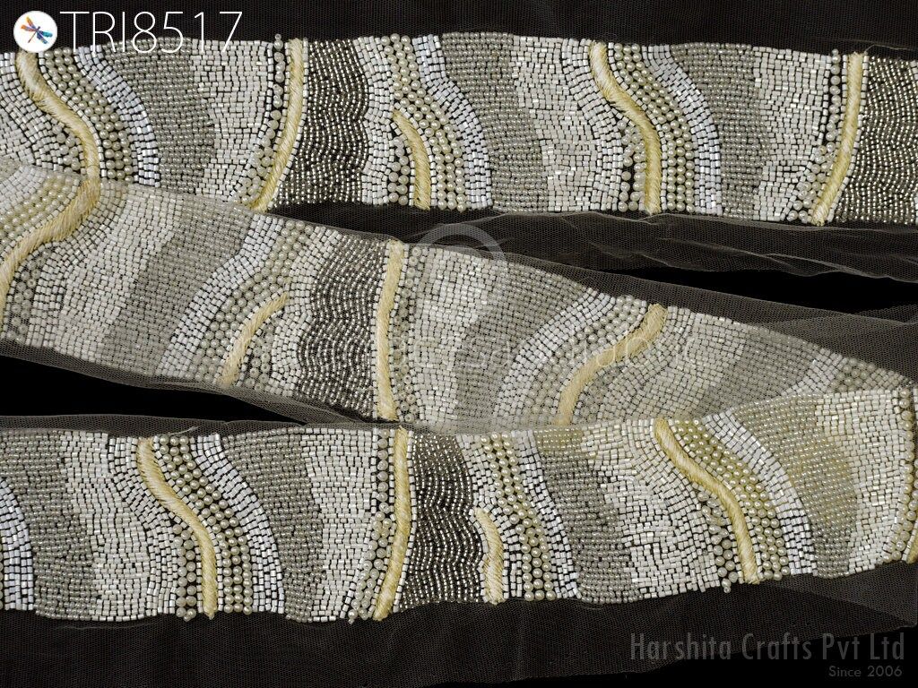 This is exclusive beaded trim Handcrafted, has been hand This beautiful Lace can be used for designing stylish blouses, shrugs, skirts, tunics, festive wear, wedding wear and dresses. Handbags, bed sheets, Headbands making, Bridal Clutches, jeans, Festive celebrations, Wedding trend, Bridal lehenga, etc.