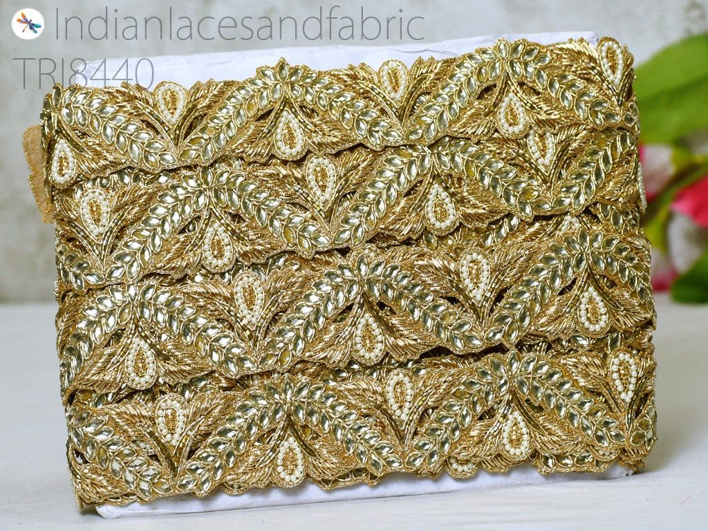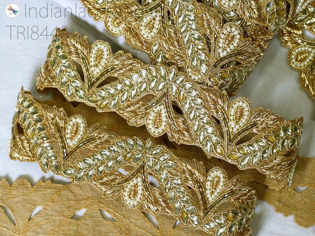 Kundan Zardosi Gold Trim: Indian Bridal Dress Embellishment, 9 Yards