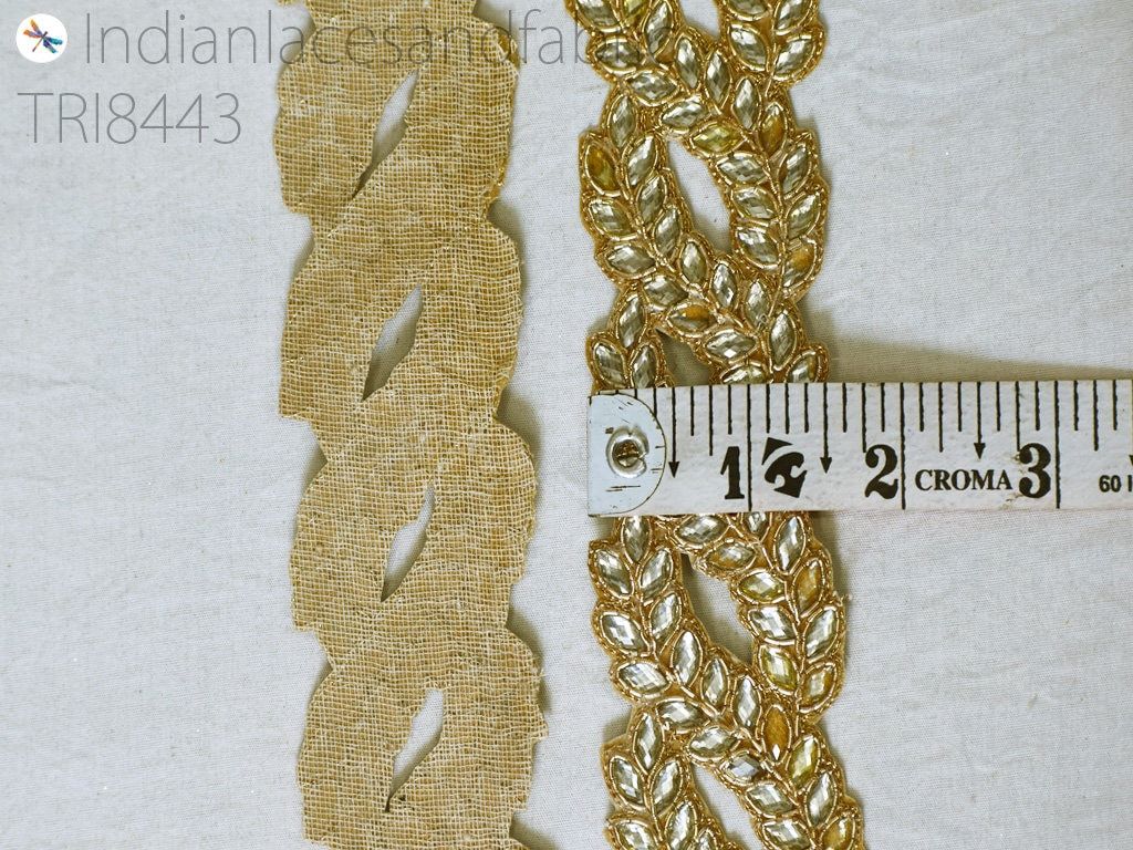 Kundan Zardosi Gold Trim by the Yard | DIY Crafting Indian Embellishments Bridal Belt Sash for Wedding Dresses Sari Decorative Saree Border, trims for blouses, designer dresses Borders, decoration trim, saree border, embellishments border, wedding costume trimming, decorated dresses Tape