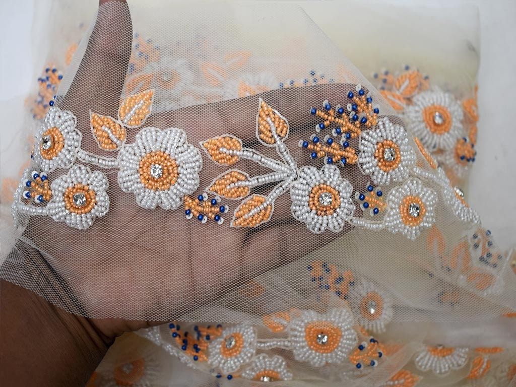 This is exclusive beaded trim Handcrafted, has been hand embroidered. This beautiful Lace can be used for Boutique material, craft project, women Kurtis, Bridal lehenga, Tops, Caps, salwar kameez, etc.