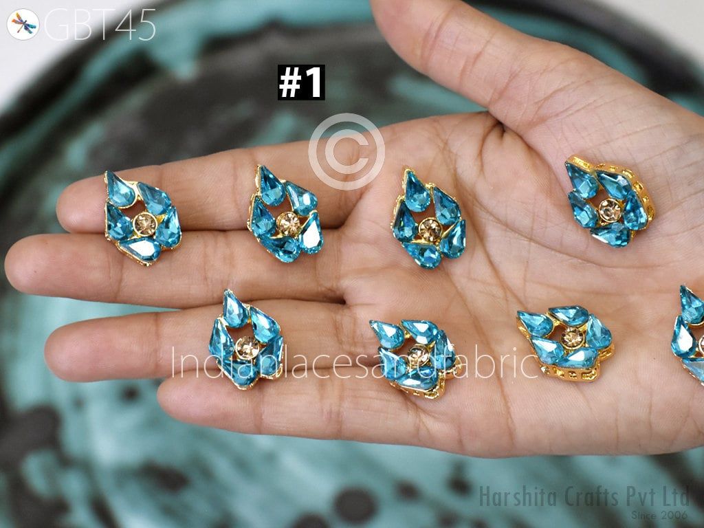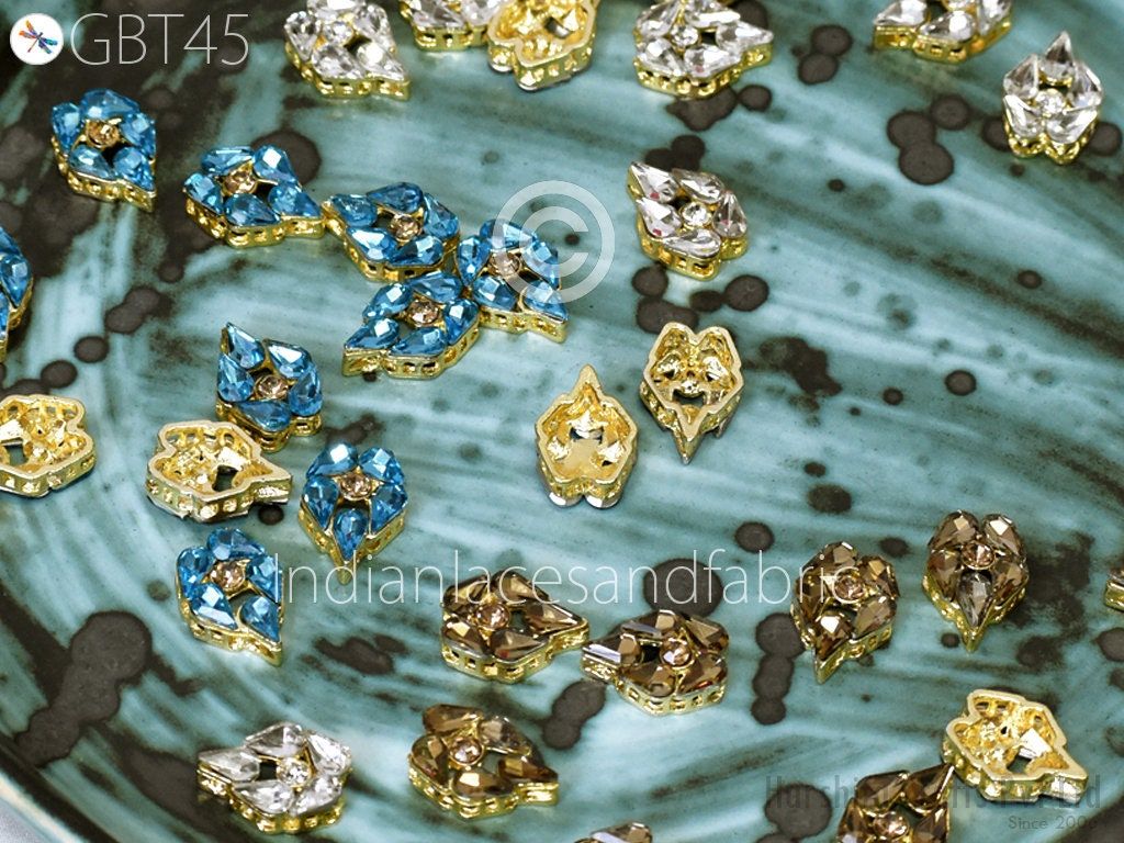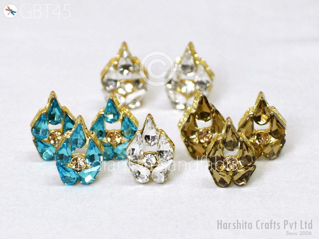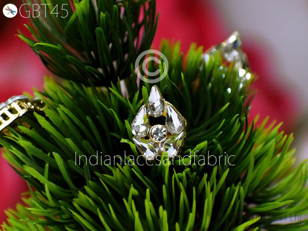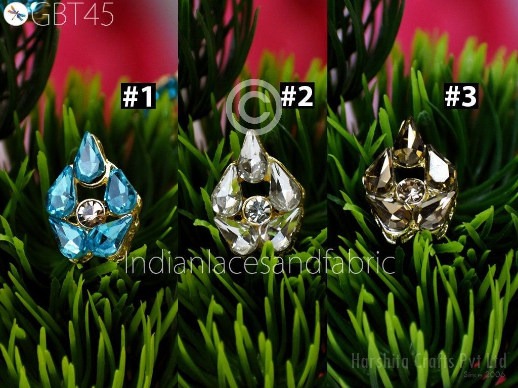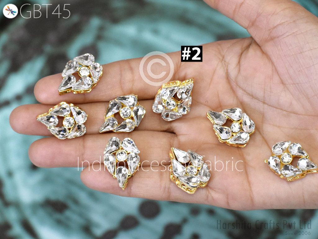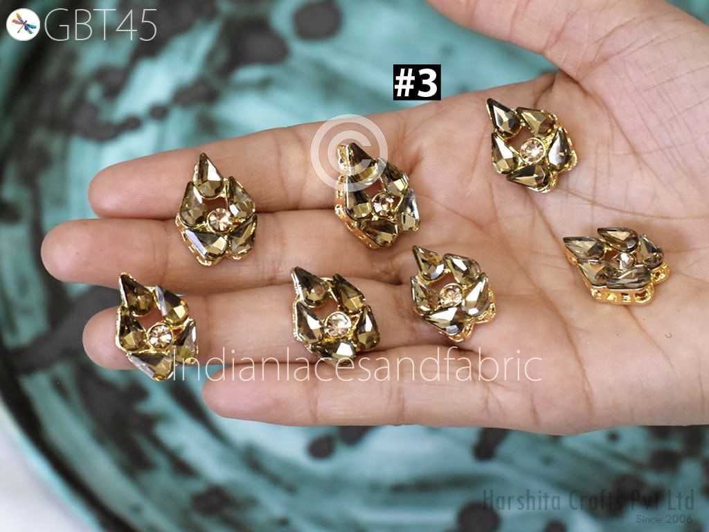 6 Pc Rhinestone Button Fancy Metal Embellishment button for Flower Centers buttons with shank Indian Decorative Wedding Dress Crafting
