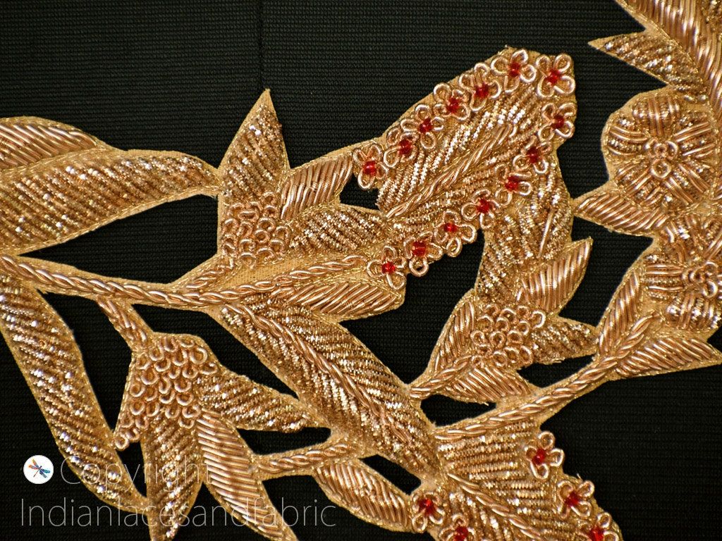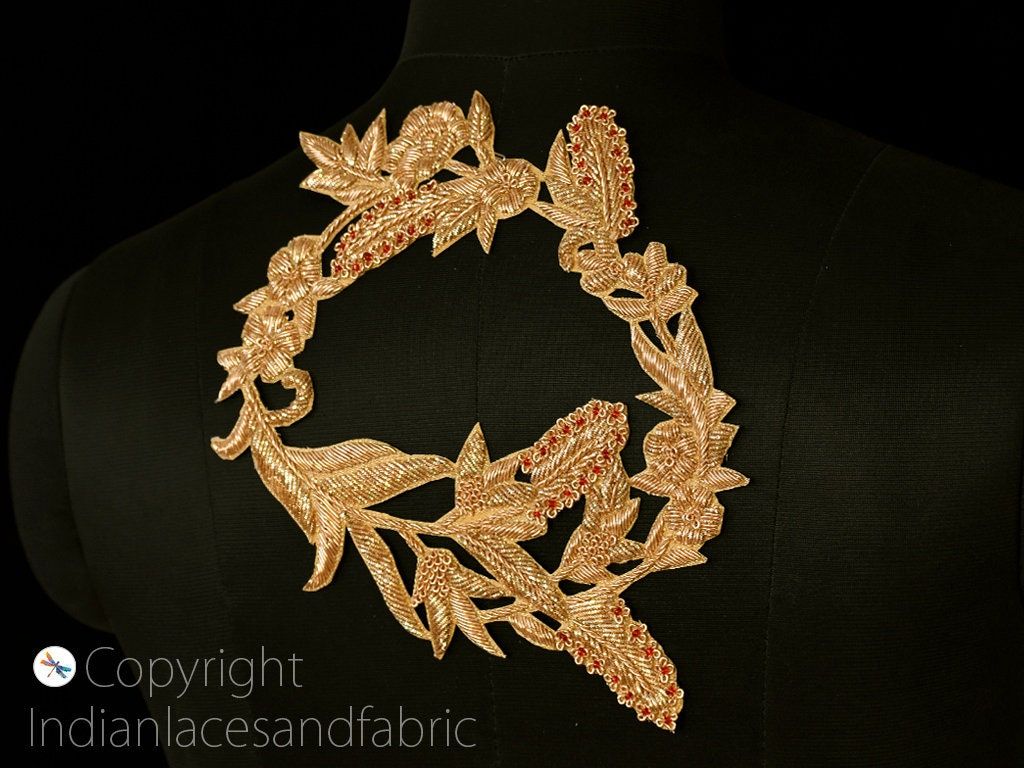 Sequin Zardosi Neckline Applique Shoulder Patches: Gold Embroidery, Wedding Dress DIY (2 Pc)
