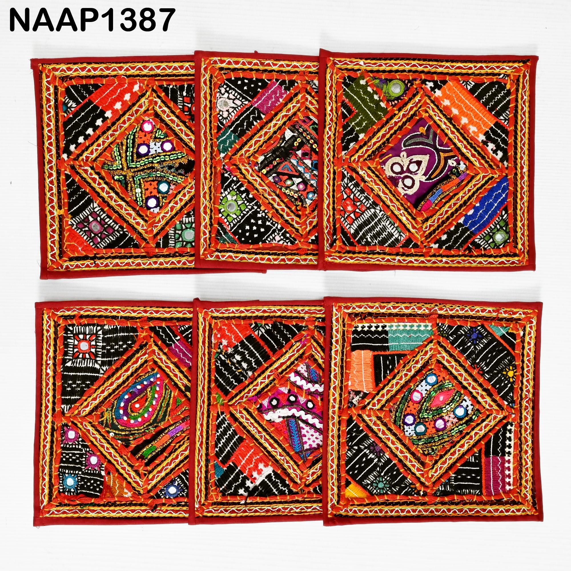 New Arrival! Set of 6, Handmade Kutch Applique & Patch Embroidery Banjara Vintage Embellished Embroidered Indian Tribal Patch Cloth Applique
