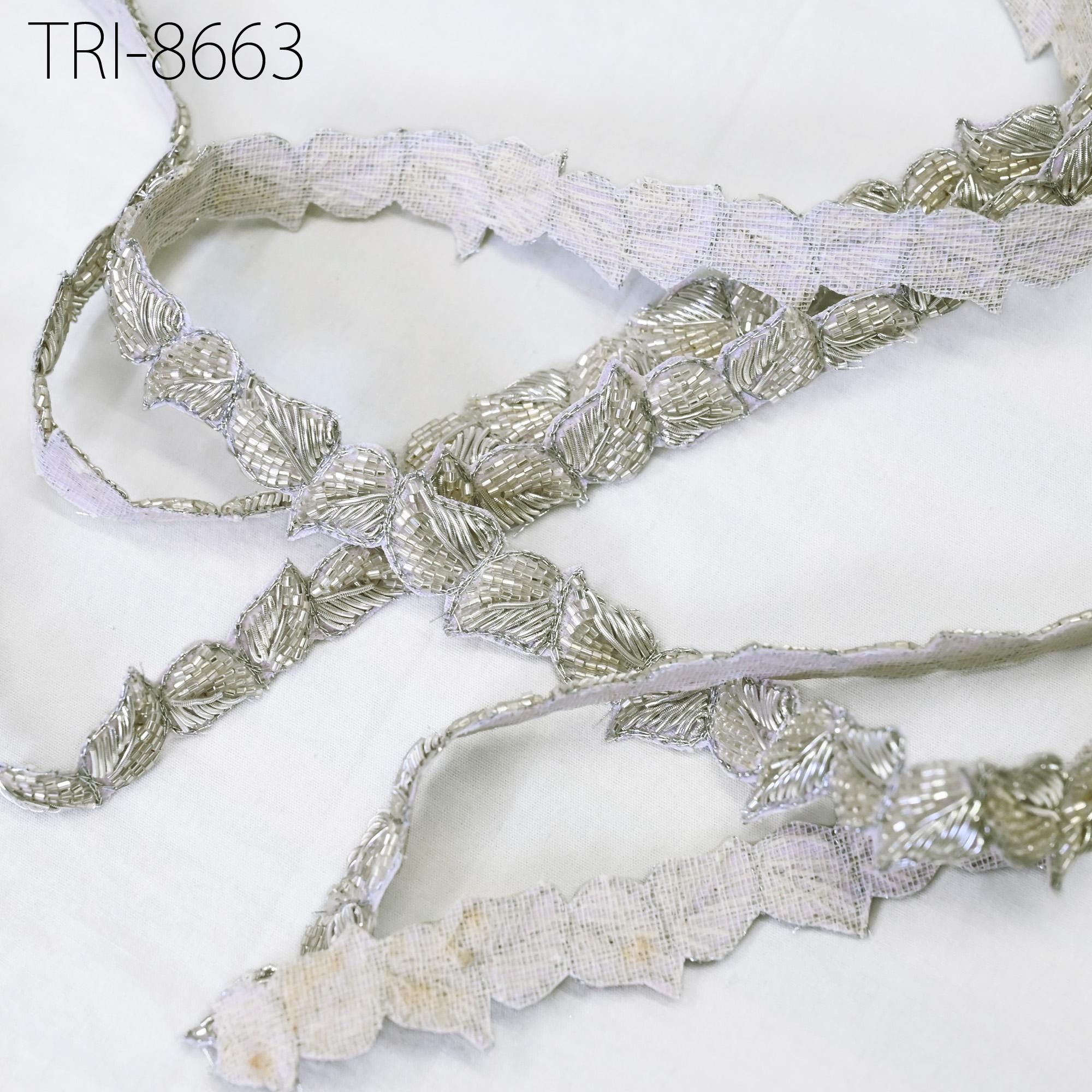 This exquisite Silver Zardozi Beaded Trim By 3 Yard is Exclusive cut beads (Cut dana) and metallic thread embroidered trim Handcrafted zardozi, has been hand embroidered