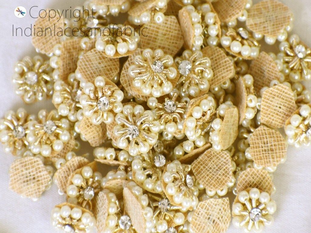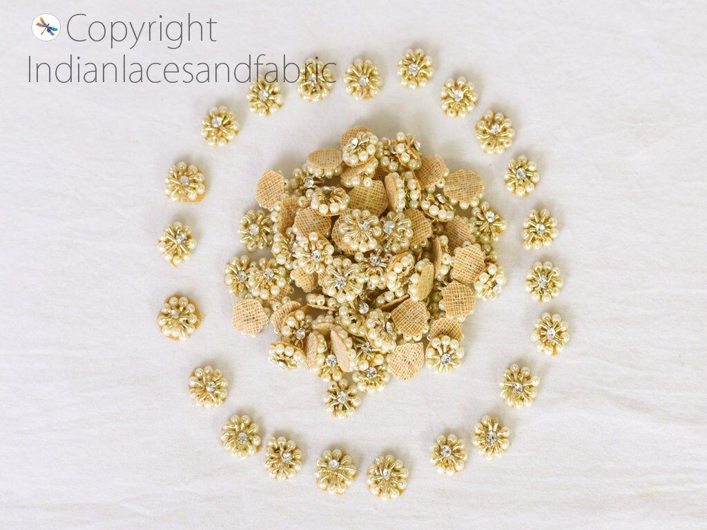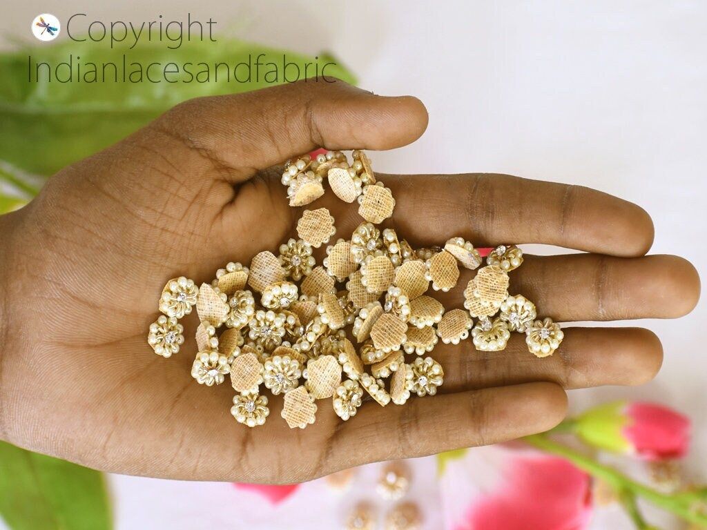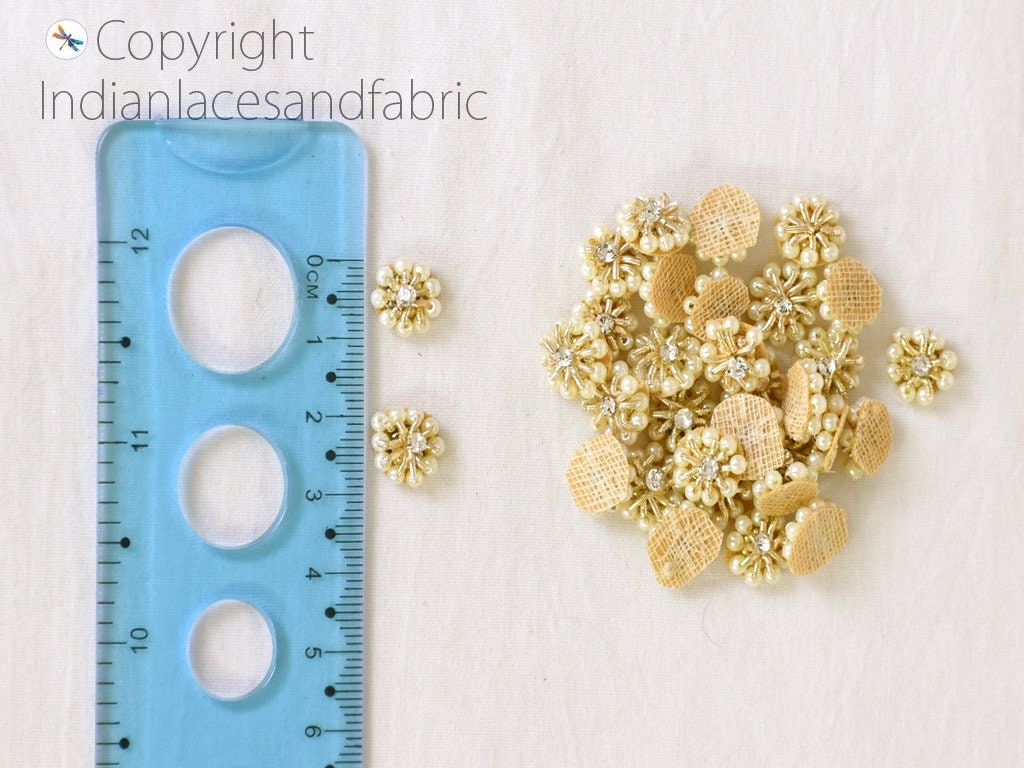 Tiny Golden Flower Beaded Sequins: Indian Handmade Appliques (75 Pieces, 0.5cm Diameter)