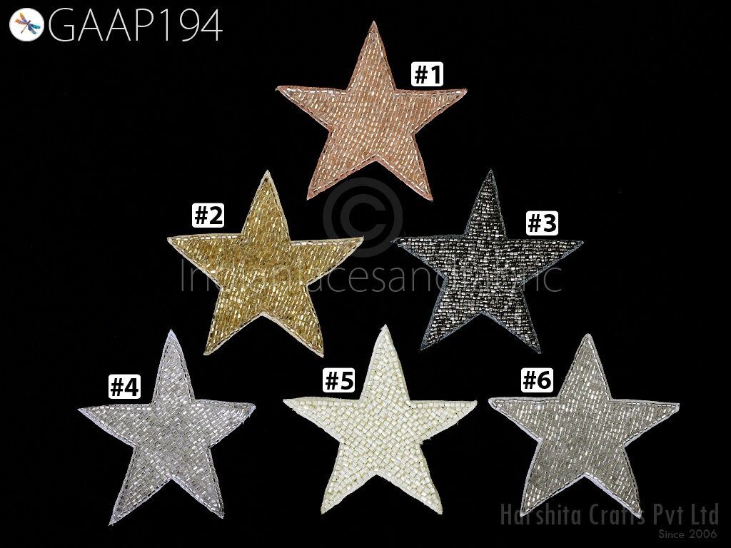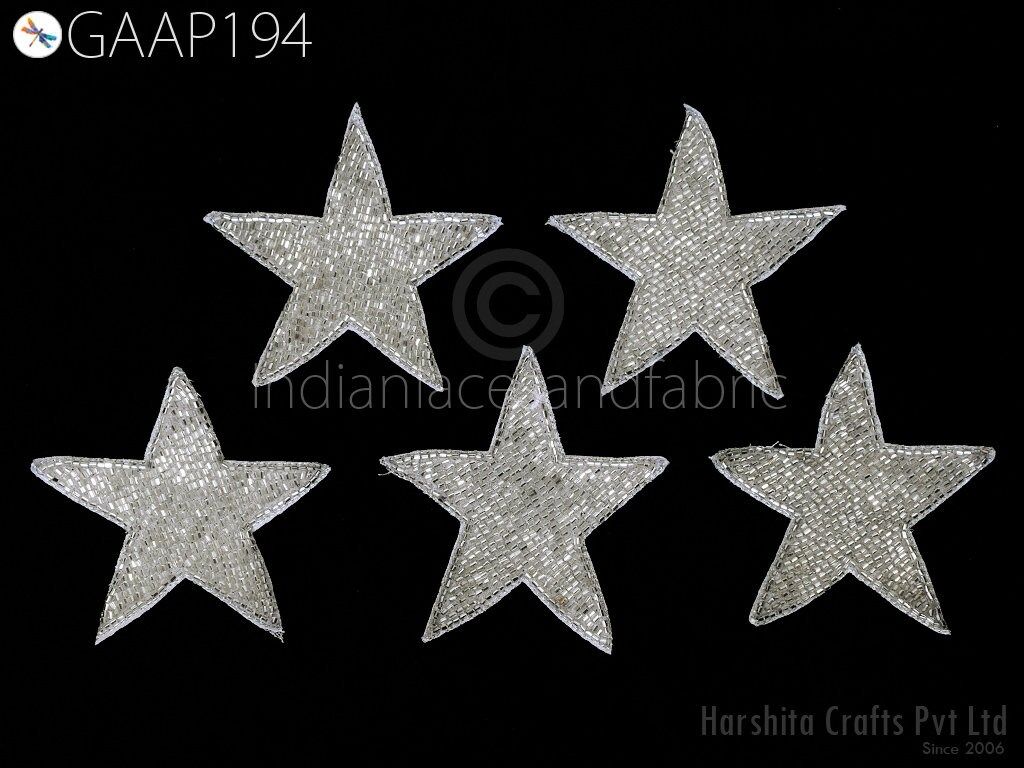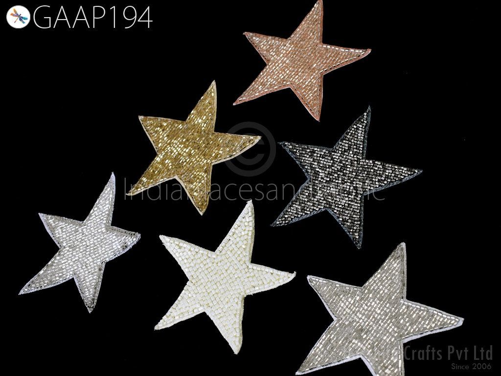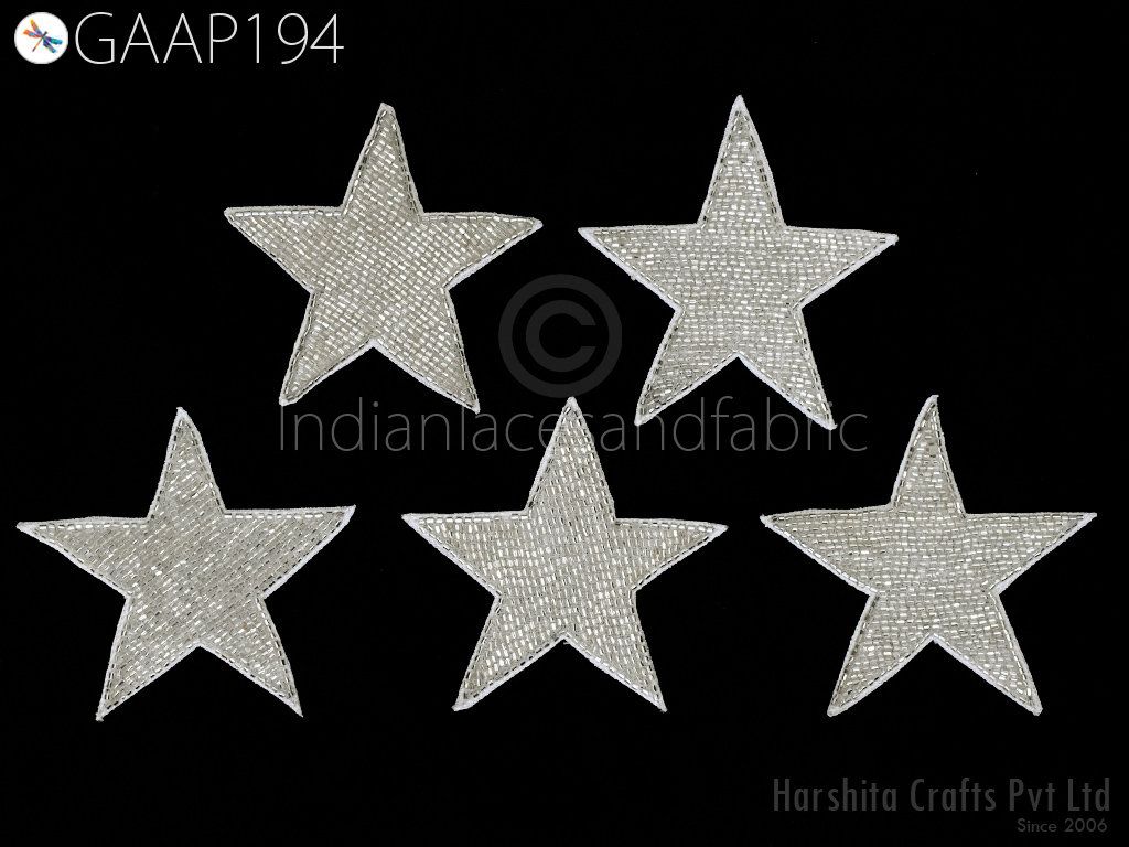 White Beaded Star Appliques: Indian Embroidery Patches (Set of 6)
