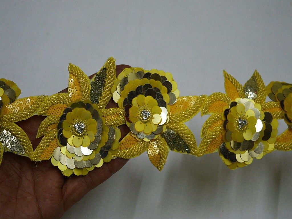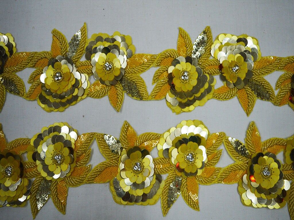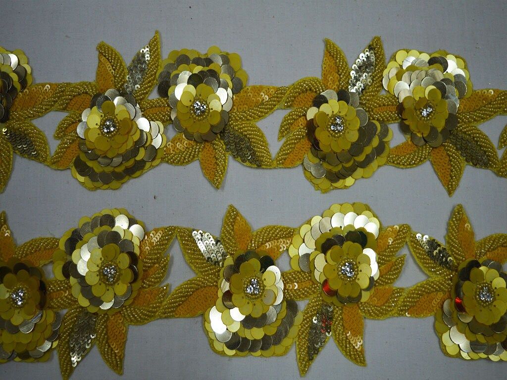 Yellow Gold Indian Beaded Lace Trim by the Yard Handmade Wedding Dress tapes Bridal Belt Sashes Decorative Crafting Sari Border, Sofa Covers lace, Scrap booking trim, Weddings sari lace, Fabric and Notions, Bag Embellishments border.