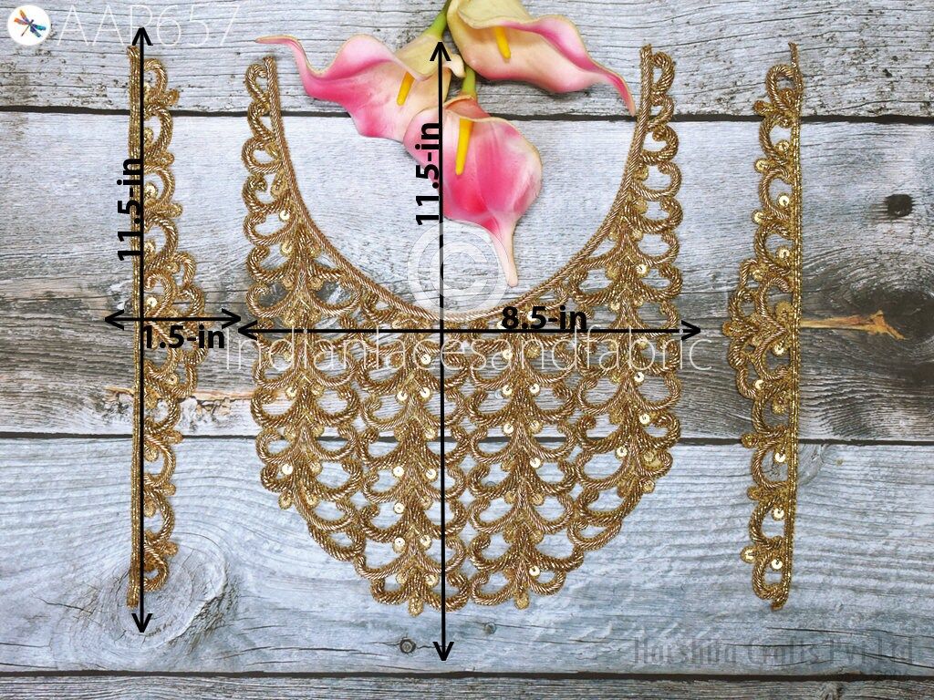 Crafting Zardosi Gold Patch with Sleeves Fancy Neckline Handcrafted Indian Sequins Decorated Appliques Decorative Wedding Dress Neck Patches, Patches For Dress, Black Patches, Wedding Dress Neckline, Decorative Patches, Sequins Patches, Decorated Beaded Patches, Lehenga Patches, Festive Wear Patches, Designer Patches, Designer Wedding Dresses neckline