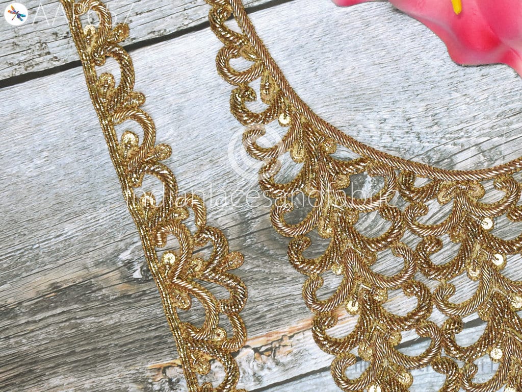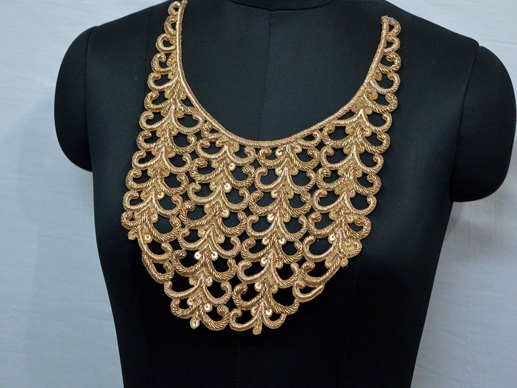 Zardosi Gold Applique: Handcrafted Sequin Wedding Neckline Patch