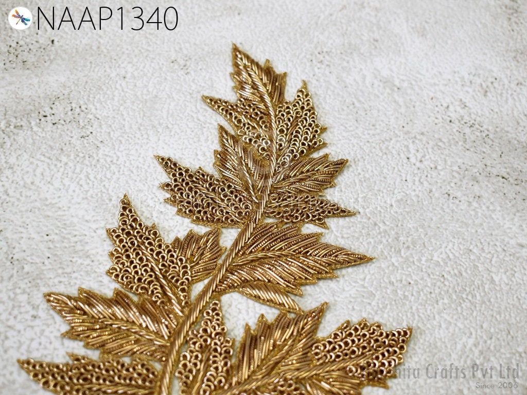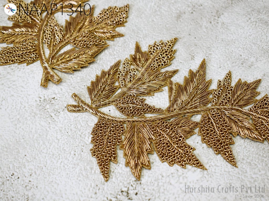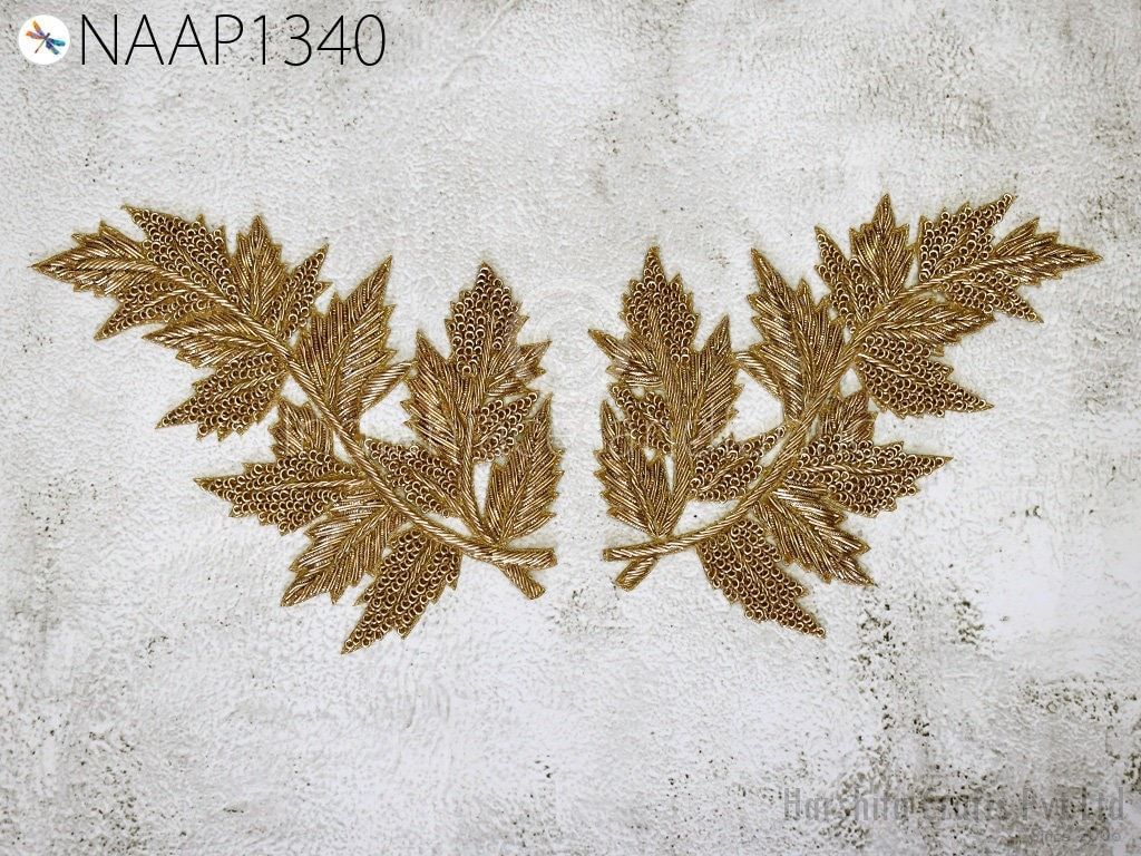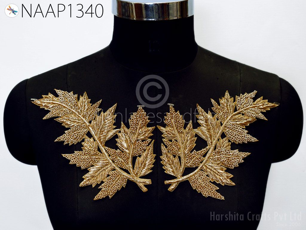 1 Pair Handmade Neckline Patches Zardosi Gold Neck Patch Decorative Zardozi Embellishment Wedding Party Dresses Appliques Costume DIY Supplies