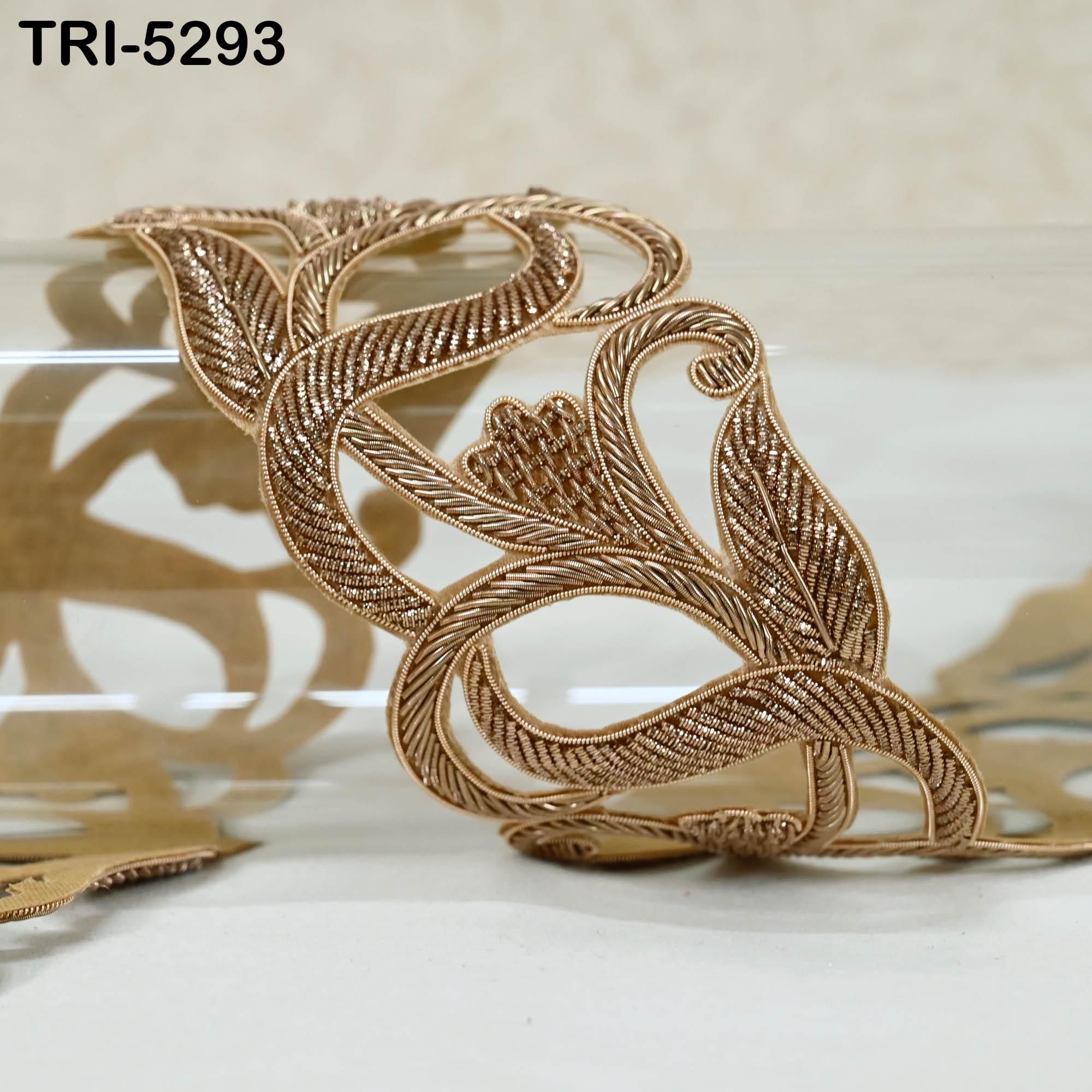 Exclusive Zardozi embroidered trim, has been hand embroidered. Zardozi is an ancient art of sewing gold threads onto the fabric to create extraordinary patterns, giving it a rich look to a bridal dress or classy dress. A perfect embellishment for a bridal dresses or for festive mood outfit a Trim. This Trim will add mystique to your fabric, you can use this lace alone or add it with other laces to create a new unique design for Wedding dress. This Embellishment Border/ Lace for your wedding dresses